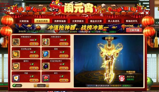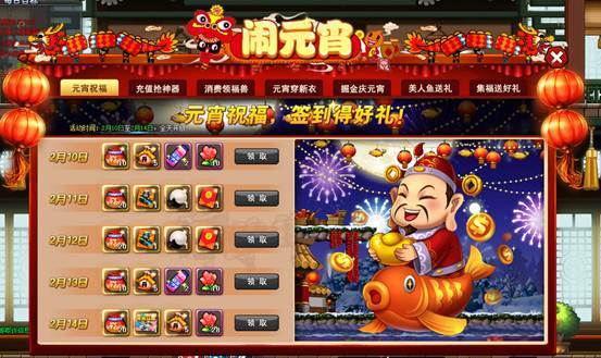 | 2月12日 | 神器碎片包*20、高级伙伴召唤卡*1、大元宵*1、红包*1 |