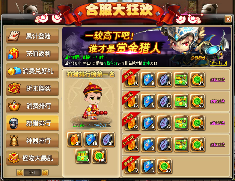 活动内容:全服玩家击杀怪物达到一定数量后可以领取奖励