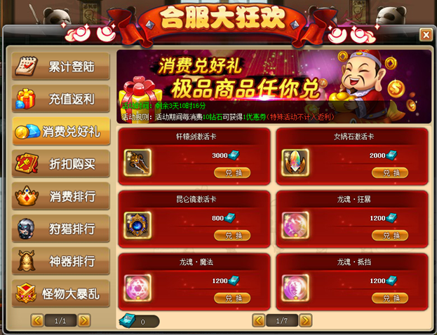 活动时间:合服当日起至合服后第五天23:59:59结束